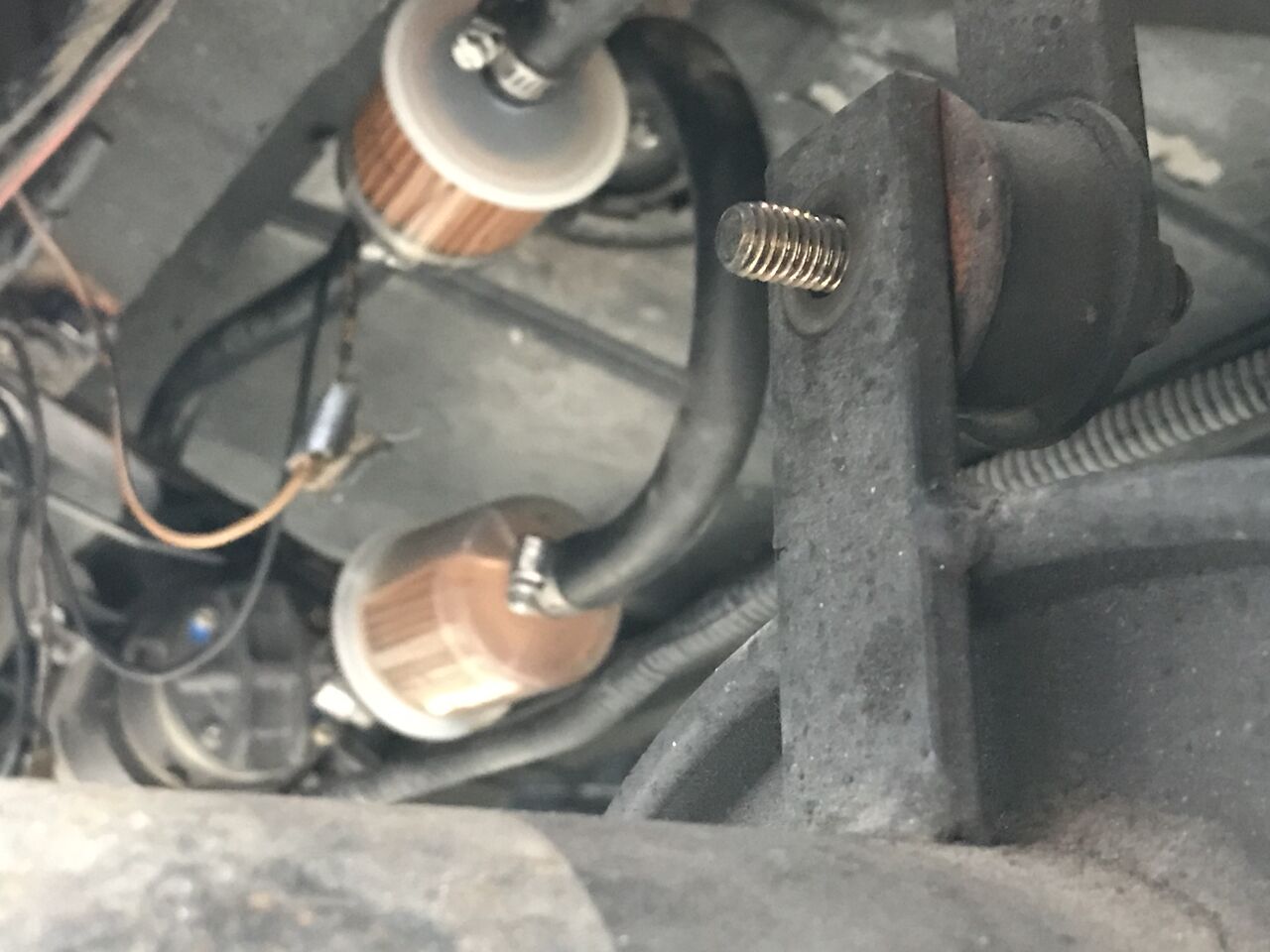 いつもの事ですが、キャブ内のガソリンが干上がるとパッキンが痩せて漏れて来るので、電磁ポンプで送った後は漏れたガソリンを撒きとりしばらく放置