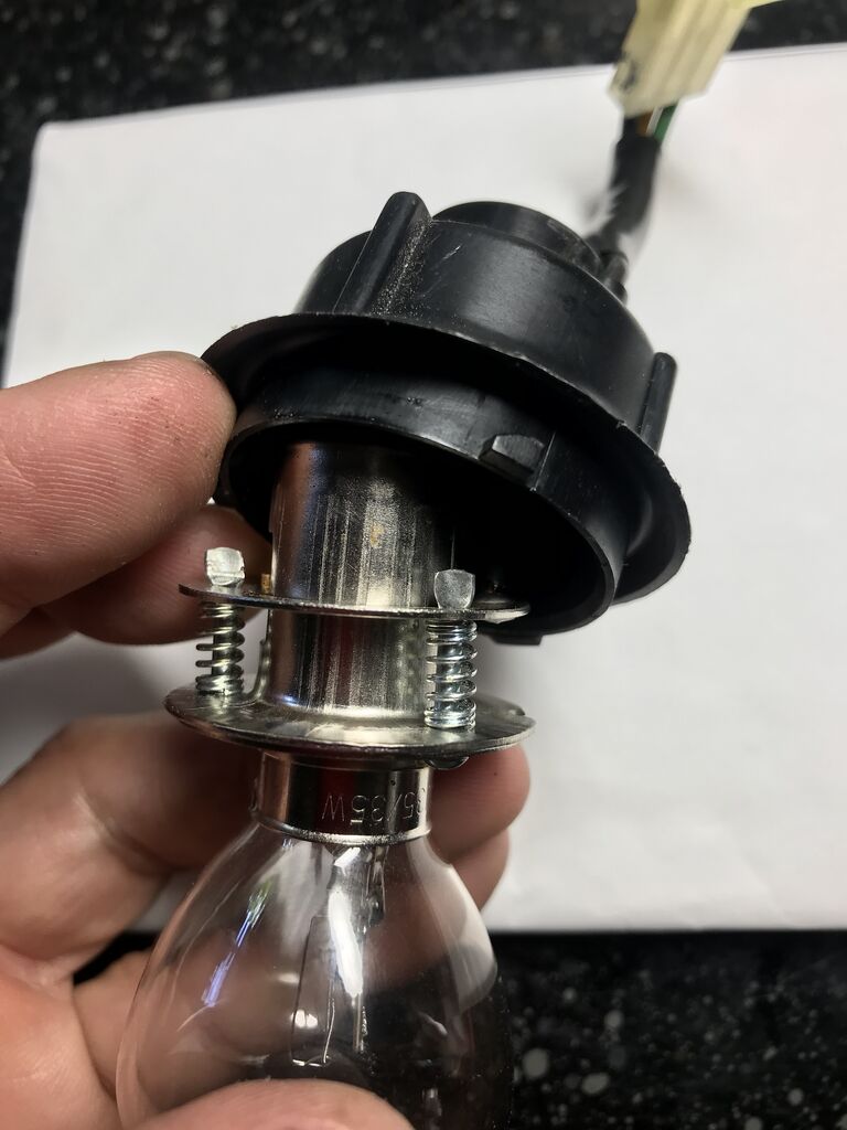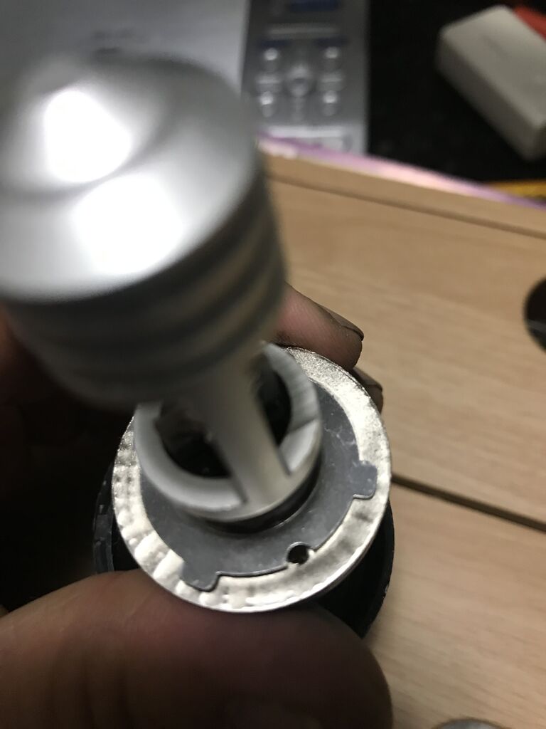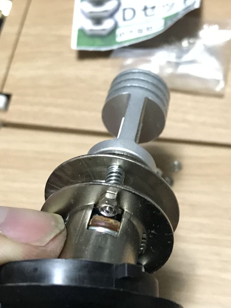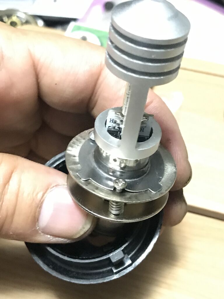 三箇所の丸い頭の突起にバルブに付いた穴にはめ込み捻って固定するんでが、PH8LEDバルブには穴が無い